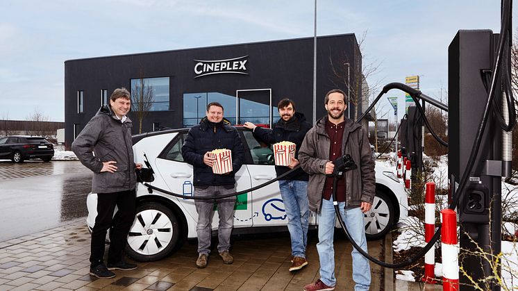 „Hasta la Charger, Baby“ - Lechwerke (LEW) und die KinoGruppeRusch nehmen am Cineplex Kino in Meitingen drei Schnellladestationen mit sechs Ladepunkten für Elektrofahrzeuge in Betrieb