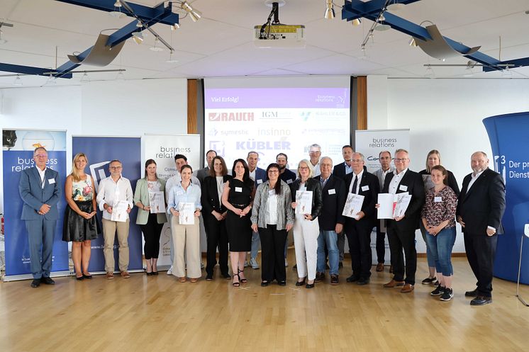 Die Führungskräfte von zwölf der insgesamt 21 ausgezeichneten Unternehmen waren bei der Urkundenverleihung zugegen: insinno GmbH, IGM GmbH & Co. KG, Wahler & Co. GmbH Firmenversicherungen, RAUCH Landmaschinenfabrik GmbH, ITech Progress GmbH, Calvatis GmbH, Bechtold & Sohn, symestic GmbH, KÜBLER GmbH Energiesparende Hallenheizungen, KTL Kombi-Terminal Ludwigshafen GmbH, PREFAG Carl Rivoir GmbH & Co. KG, LIEBLANG Dienstleistungsgruppe.