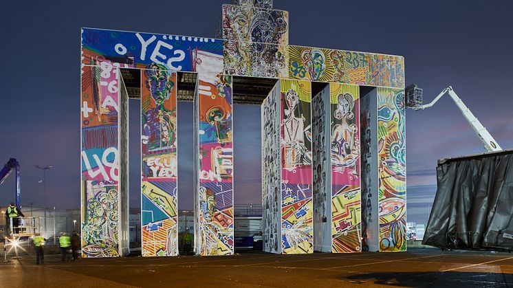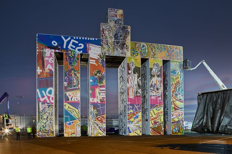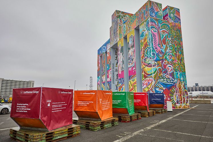 Das zurzeit auf dem Gelände der Lufthansa Cargo am Frankfurter Flughafen errichtete Global Gate symbolisiert das von der UN erklärte Ziel, mit Hilfe der Nachhaltigkeitsziele zu einer besseren ökonomischen, ökologischen und sozialen Entwicklung beizutragen, auf beeindruckende Weise. Es ist mit seinen 24 Metern Breite und 20 Metern Höhe das größte mobile Kunstwerk der Welt, umgesetzt durch den bekanntesten deutschen Nachwuchskünstler der Gegenwart, den 22jährigen Leon Löwentraut. Es ist gestalterisch an das Brandenburger Tor angelehnt.