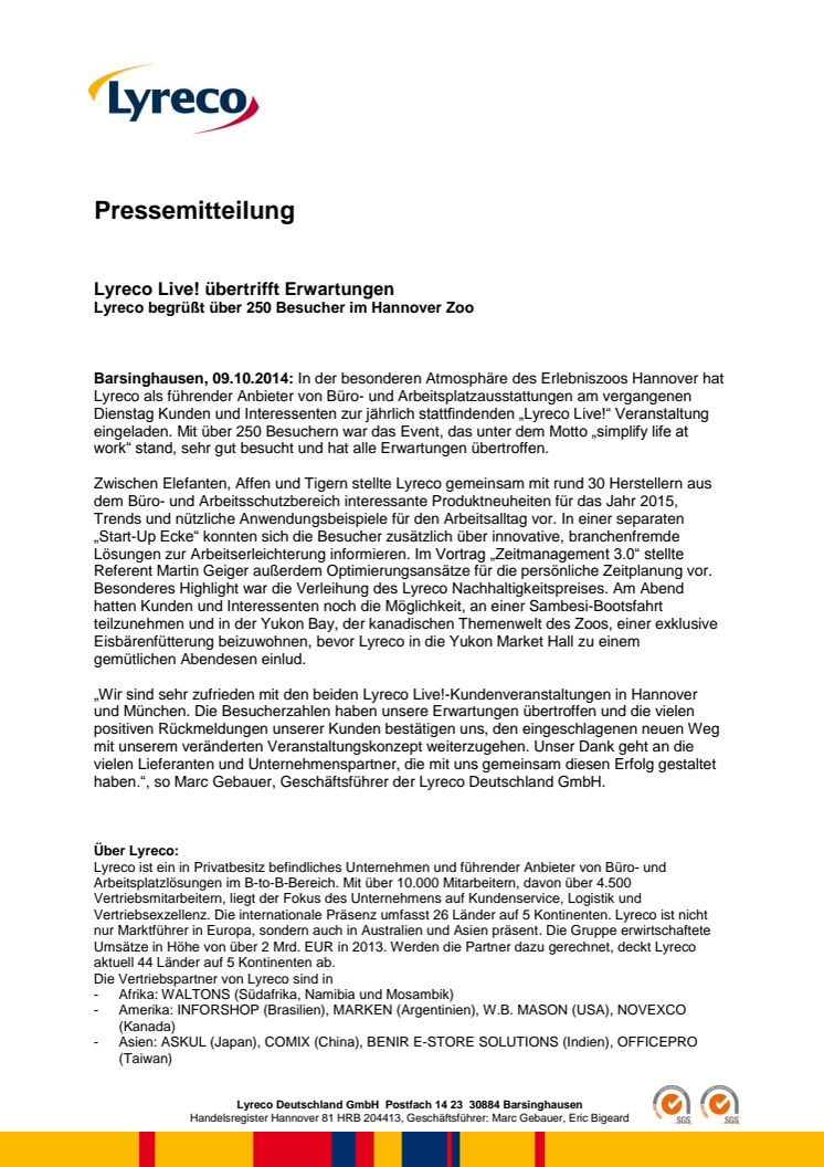 Lyreco begrüßt über 250 Besucher im Zoo Hannover