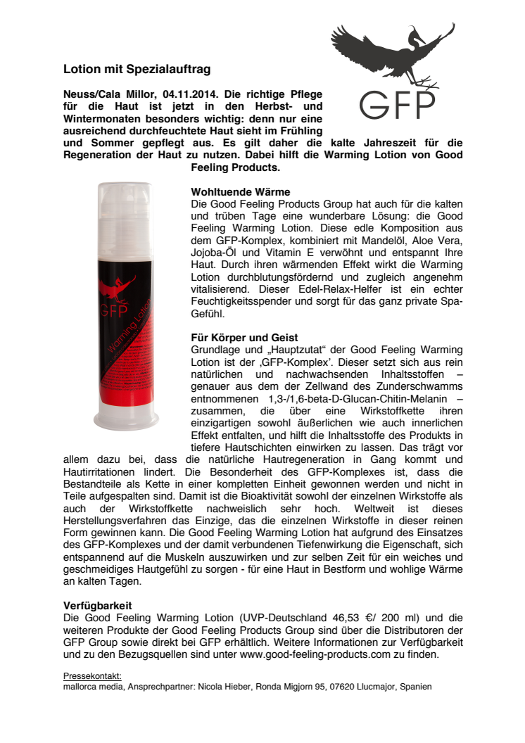 Die Good Feeling Products Group hat auch für die kalten und trüben Tage eine wunderbare Lösung: die Good Feeling Warming Lotion.