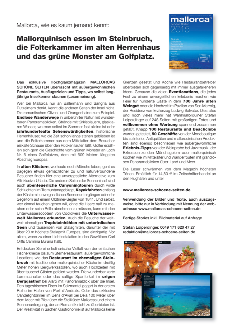 Pressemitteilung "Steinbruch" Mallorcas schöne Seiten