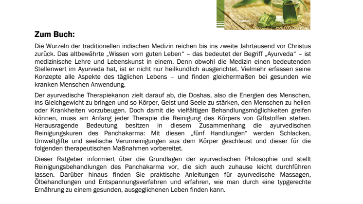 - Mehr zum Ratgeber "Reinigen und Entgiften mit Ayurveda"