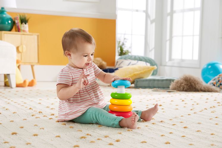 - Das Greifen und Stapeln der Ringe hilft Babys dabei, Feinmotorik und Problemlösungsfähigkeiten zu