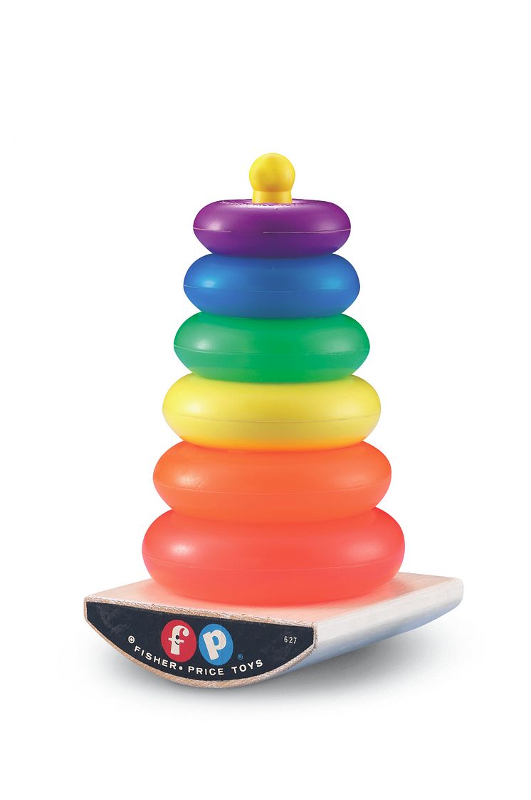 - Klassisches Stapelspielzeug mit 5 bunten Ringen und Schaukelbasis zum Anstupsen