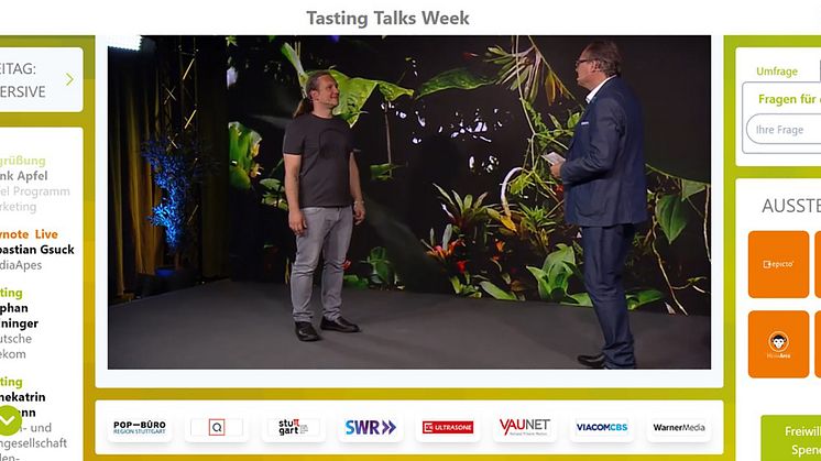 Die Partner, Förderer und Sponsoren der Tasting Talks Week (in alphabetischer Reihenfolge): ACCESS, BBC Worldnews, bwcon, Discovery, epicto, Fincons, Goldmedia, HSE24, Hochschule der Medien (HdM), IHK, Land Baden-Württemberg, Landesanstalt für Kommunikation (LfK), MediaApes, Meininger Verlag, MFG Baden-Württemberg, NHK WORLD-JAPAN, QVC, Servus TV, Stadt Stuttgart, SWR, Ultrasone, VAUNET, ViacomCBS, Warner Media, Wirtschaftsförderung Region Stuttgart.