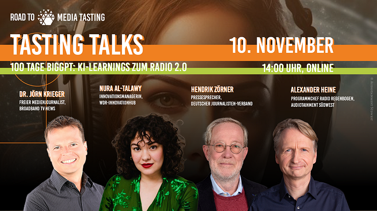 Wie dieses Ergebnis zu bewerten ist und welchen Mehrwert Künstliche Intelligenz für die Medienbranche bieten kann, haben wir mit hochkarätigen Gästen besprochen. Dazu stellte Alexander Heine, Projektleiter Content bigGPT bei Audiotainment Südwest, in seinem Impulsvortrag das Projekt seines KI-basierten Radiosenders vor – „bigGPT“ sendet vollständig computer-generierte Inhalte und synthetische Stimmen, die auf einem Large Language Modell basieren. Moderiert von Dr. Jörn Krieger wurde dazu lebhaft diskutiert. Zu Gast waren diesmal Nura Al-Talawy, Innovationsmanagerin im WDR-Innovationhub und Hendrik Zörner, Pressesprecher des Deutschen Journalisten-Verbands. Die Aussagen der Experten im Überblick: