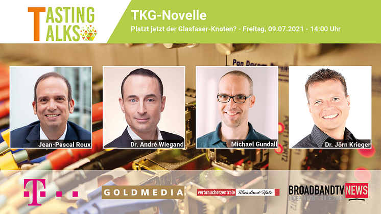 Im Tasting Talk #16 diskutierten Dr. André Wiegand, Geschäftsführer der Beratung Goldmedia, Jean-Pascal Roux, Senior Vice President Wohnungswirtschaft und Breitbandausbau Geschäftskunden der Telekom Deutschland, und Dipl.-Ing. Michael Gundall, Telekommunikationsexperte der Verbraucherzentrale Rheinland-Pfalz die Glasfaser-Zukunft Deutschlands. Moderiert wurde der Talk von Dr. Jörn Krieger von Broadband TV News.