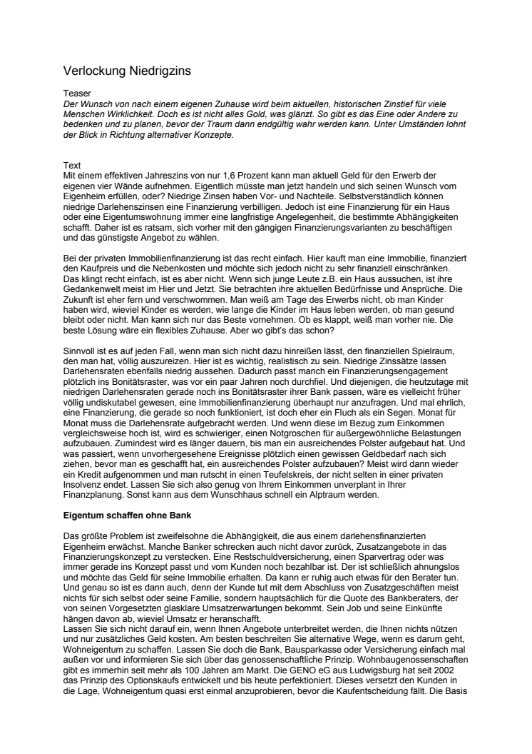 Der Wunsch von nach einem eigenen Zuhause wird beim aktuellen, historischen Zinstief für viele Menschen Wirklichkeit. Doch es ist nicht alles Gold, was glänzt. So gibt es das Eine oder Andere zu bedenken und zu planen, bevor der Traum dann endgültig wahr werden kann. Unter Umständen lohnt der Blick in Richtung alternativer Konzepte.