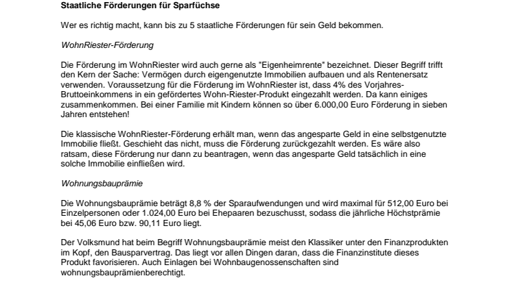 Gefördertes Sparen - Staatliche Förderungen für Sparfüchse