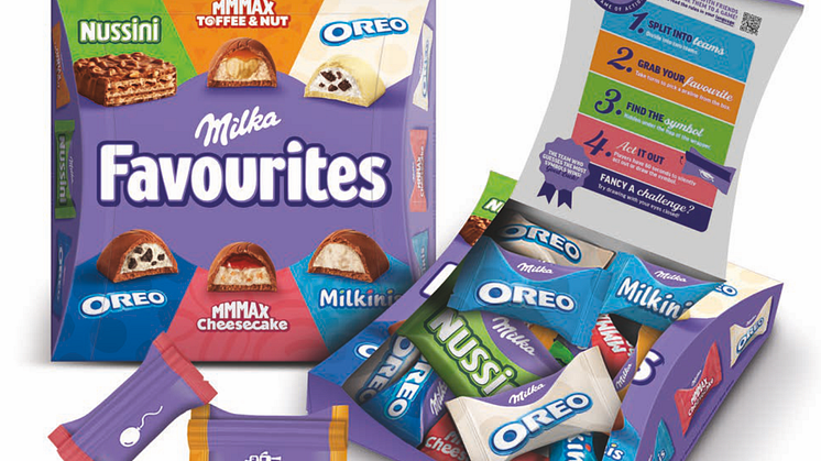 Dürfen in keiner geselligen Runde fehlen: Die neuen Milka Favourites sind ideal zum Teilen mit den Liebsten!