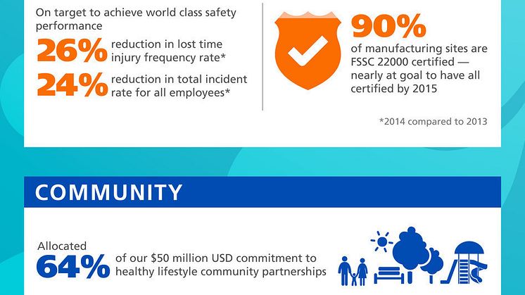 On target to achieve FSSC 22000 (Food System Safety Certification) for all internal manufacturing facilities by 2015. In 2014, 90 percent of manufacturing sites were certified.