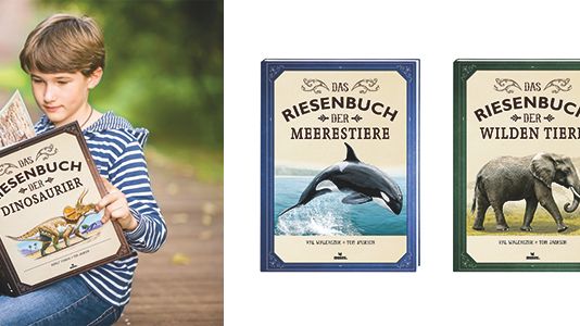 All das kann in den Riesenbüchern vom moses. Verlag bewundert werden. Ganz besonders faszinierend sind neben den außergewöhnlichen Fakten vor allem die atemberaubend schön illustrierten, großformatigen Doppelseiten, auf denen insgesamt 36 Tiere je Band bewundert werden können. Jede Doppelseite ist wie ein großformatiges Plakat, zusätzlich gespickt mit erstaunlichen Fakten und informativen Steckbriefen. So kann man sein Wissen über die Tiere testen und neue Dinge erfahren. Eine opulente Fundgrube zum Stöbern, Staunen und Immer-wieder-anschauen.