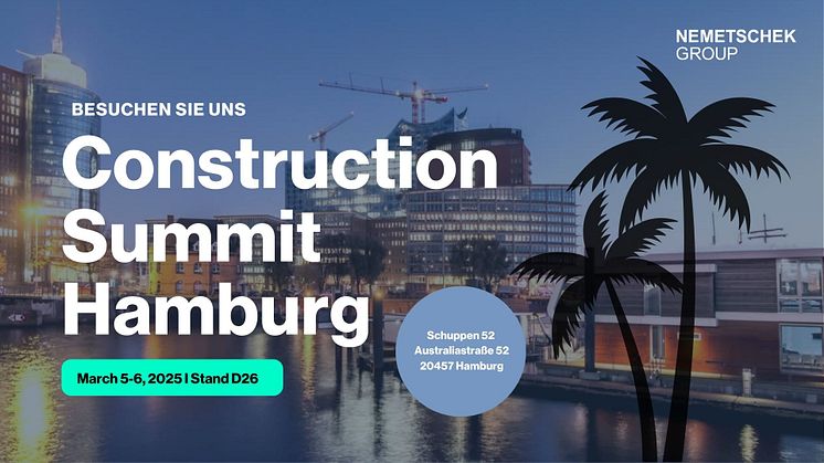 Die Nemetschek Group ist erneut auf dem Construction Summit in Hamburg vertreten. Die Veranstaltung ist die führende Konferenz für die digitale Transformation der Bau- und Immobilienbranche. Gemeinsam mit ihren Marken ALLPLAN, Bluebeam, Crem Solutions, Nemetschek dTwin, Nevaris und Solibri präsentiert die Nemetschek Group innovative Softwarelösungen.