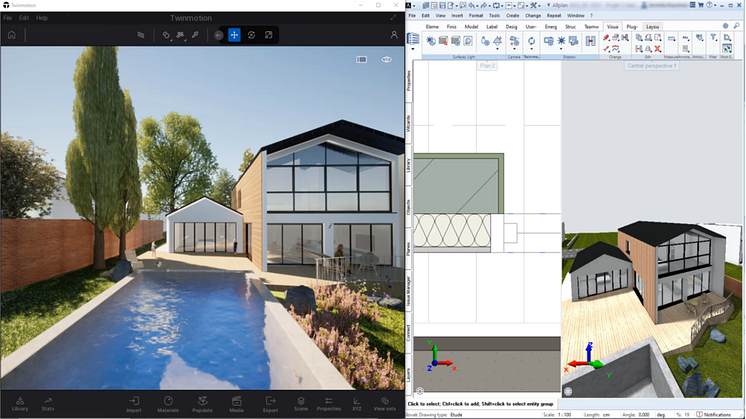 In Architekturbüros steigt der Bedarf an beschleunigten 3D-Design- und Visualisierungs-Workflows, die eine dynamische Entscheidungsfindung im Planungsprozess unterstützen. Twinmotion ist ein Echtzeit-Visualisierungstool von Epic Games, Inc. Der neue Twinmotion Direct Link in Allplan 2023-1 vereinfacht den Datenaustausch und ermöglicht die Synchronisation von Allplan-Modellen mit Twinmotion in Echtzeit per Mausklick. Er steht in Allplan 2023-1 als Technical Preview zur Verfügung.