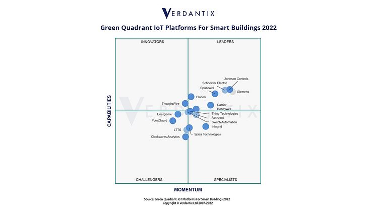 Antwerpen, 2. Februar 2022 – Das unabhängige Analystenunternehmen Verdantix hat am 18. Januar seinen aktuellen Green-Quadrant-Bericht zu IoT veröffentlicht: „Green Quadrant: IoT Platforms For Smart Buildings 2022”. Diese Benchmark bietet einen detaillierten, faktenbasierten Vergleich der 17 bekanntesten IoT-Plattformen für intelligente Gebäude, die aktuell auf dem Markt erhältlich sind.