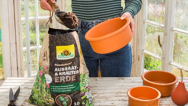 Gut geeignet hierfür ist die NeudoHum Aussaat- und KräuterErde. Sie besteht aus fein gesiebtem Rindenhumus und Kokosfasern, also aus nachwachsenden Rohstoffen. Sie enthält keinen Torf.