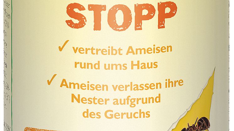 Das freiverkäufliche AmeisenStopp vertreibt Ameisen rund ums Haus. Dafür streut man das granulierte Mittel direkt auf das Nest der Insekten. Durch das im Produkt enthaltene Geraniol ziehen die Ameinsen innerhalb kurzer Zeit um. Auch Ameisenstraßen lassen sich mit dem leicht zu dosierenden Pulver umlenken.