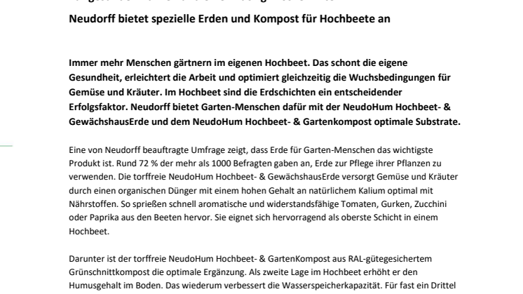 Neudorff bietet spezielle Erden und Kompost für Hochbeete an