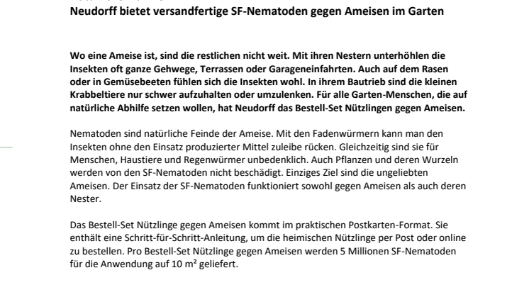 Neudorff bietet versandfertige SF-Nematoden gegen Ameisen im Garten