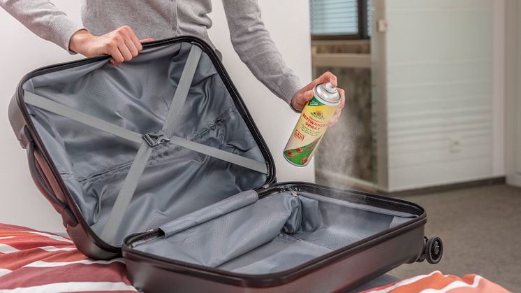 Mit dem Permanent BettwanzenSpray von Neudorff können Reisende ihr Gepäck schon vor dem Aufbruch Richtung Meer, Metropole oder Berge schützen. Der Koffer oder Rucksack muss dafür lediglich vor dem Packen mit dem Permanent BettwanzenSpray behandelt werden. Nach ein bis zwei Stunden Wartezeit können Anwender dann wie gewohnt Kleidung und weitere Reiseutensilien hineinlegen.