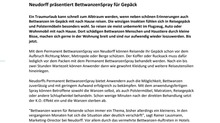 Neudorff präsentiert Bettwanzen-Spray für Gepäck
