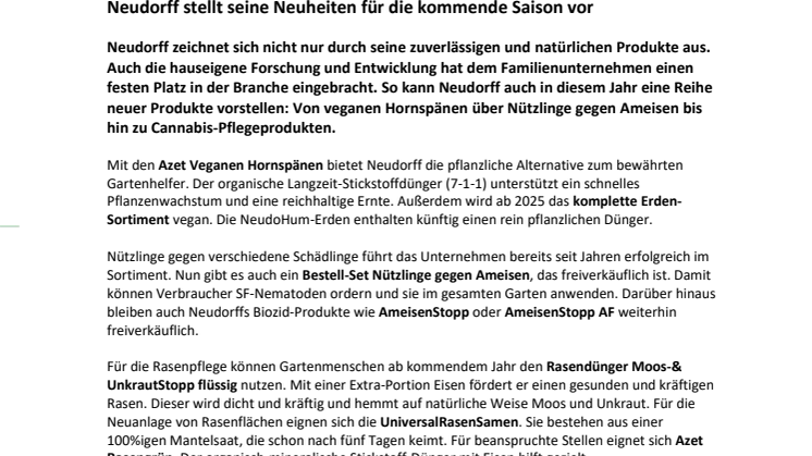 Neudorff stellt seine Neuheiten für die kommende Saison vor