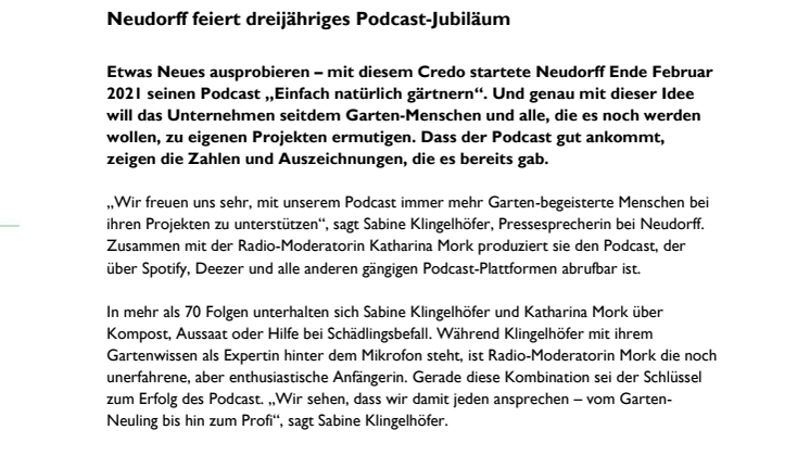 Neudorffs Presse-Newsletter: aktueller Nachhaltigkeitsbericht und Podcast-Jubiläum