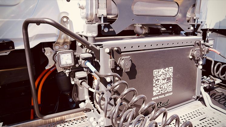 Der eActros 600 mit dem neuen Nebenantrieb (mPTO) von Paul in Kombination mit dem Meiller Kipper Grandload