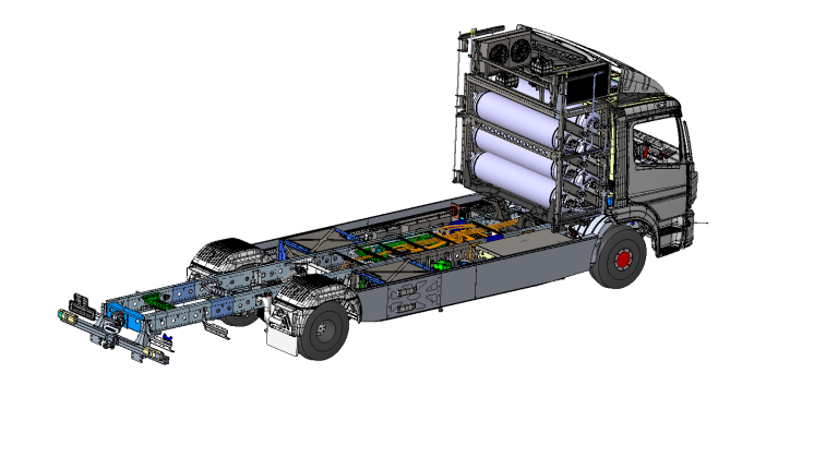 PH2P Truck mit serienmäßig waagerecht eingesetzten H2 Tanksystem