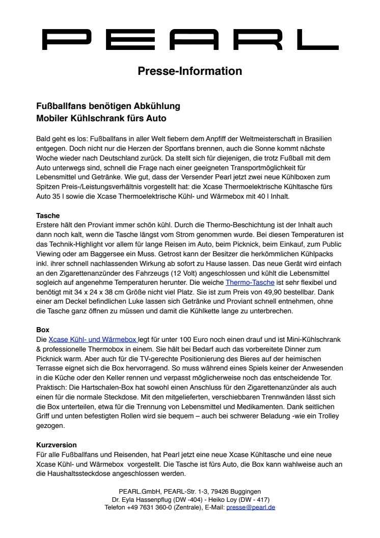 Für alle Fußballfans und Reisenden, hat Pearl jetzt eine neue Xcase Kühltasche und eine neue Xcase Kühl- und Wärmebox vorgestellt. Die Tasche ist fürs Auto, die Box kann wahlweise auch an die Haushaltssteckdose angeschlossen werden.