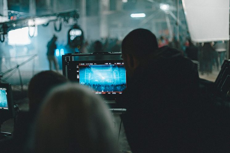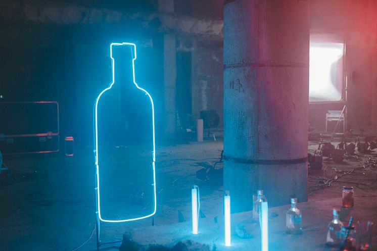 • Die ikonische Flaschenform von Absolut als Leuchtinstallation am Set