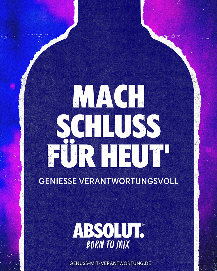 Absolut Vodka startet Responsible Drinking Kampagne: „Mach Schluss für heut'“
