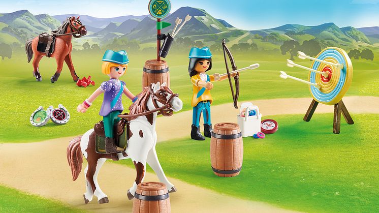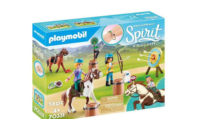 Fans von DreamWorks „Spirit – Riding Free“ dürfen sich über drei neue PLAYMOBIL-Spielsets freuen, mit denen sie gemeinsam mit Lucky, Pru und Abigail ins Sommercamp-Leben eintauchen können. Alle drei Spielsets enthalten jeweils ein fabelhaftes Armband und Hufeisen-Abzeichen von den verschiedenen Wettkämpfen zum Sammeln. Mit den Abzeichen lassen sich die Armbänder ganz individuell gestalten und immer wieder wechseln. Zu jedem der fantasievollen Spielsets gehört auch ein Kompass. Der Kompass ist das Symbol für die besondere Freundschaft von Lucky, Pru und Abigail, die immer bestehen wird, egal aus welcher Richtung der Wind weht.