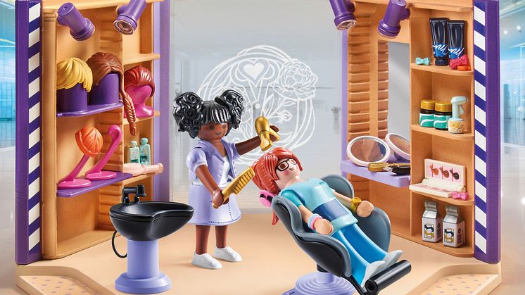Neue Frisur gefällig? Dann noch schnell zum Friseursalon! Ob kurz oder lang, rot oder braun – mit den Wechselfrisuren zum Tauschen können viele kreative Looks ausprobiert werden. Danach geht es weiter zum Spielwarenladen. Hier wartet Spielzeug in Hülle und Fülle und an der Fotowand kann die Familie noch ein lustiges Erinnerungsfoto schießen.