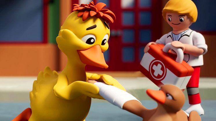 Duck on call?! Richtig gehört! Zum ersten Mal steht in einer neuen Themenwelt und Animationsserie von PLAYMOBIL ein tierischer Held im Mittelpunkt. Frechdachs Ducklas, die sprechende Ente, bricht ab sofort mit einem jungen Rettungsteam zu spannenden Einsätzen auf. Mit dem aktuellen PLAYMOBIL-Katalog bereits ab Januar angekündigt, erscheinen die neuen PLAYMOBIL-Spielsets für Kinder von 3 - 5 Jahren heute endlich im Handel.