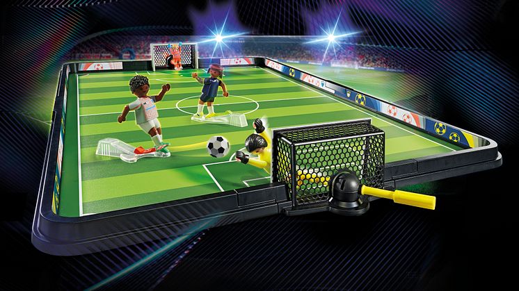 Nur noch ein Monat und die ganze Welt ist wieder im Fußballfieber. Fans des traditionsreichen Rasensports können mit der großen Fußball-Arena von PLAYMOBIL schon jetzt mit dem Kicken loslegen. Aufklappen, Tore einsetzen und schon ist Anpfiff - ganz egal, ob draußen herbstliches Regenwetter herrscht.