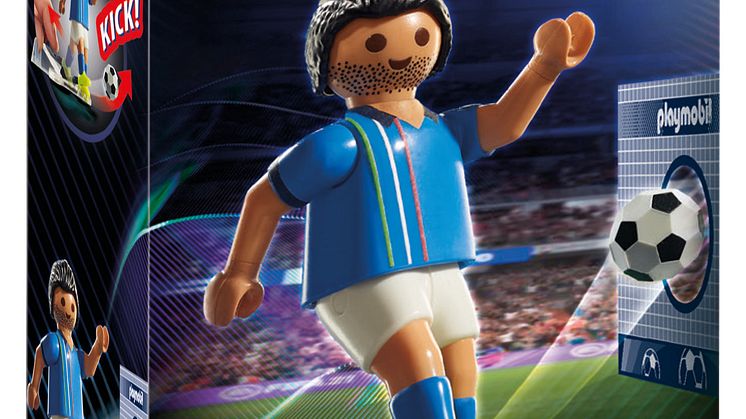 Große Fußball-Arena | PLAYMOBIL-Spieler mit Einhand-Schussfunktion | Spieler aus 12 Nationen | empfohlen ab 5 Jahren