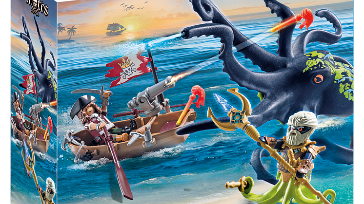 Beim Kampf gegen den Riesenoktopus treffen Dark Kraken mit seinem magischen Dreizack und der wasserspritzende Monster-Oktopus auf einen Piraten, der sich Ihnen mit Boot und Kanone in den Weg gestellt hat. Vorsicht vor Nässe, denn der Oktopus kann echtes Wasser abfeuern!