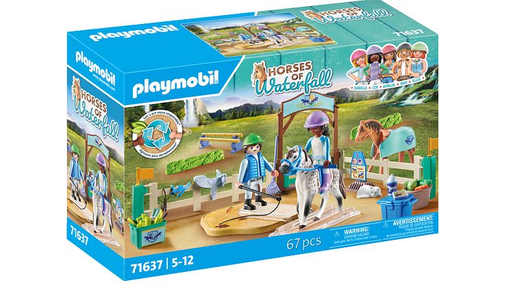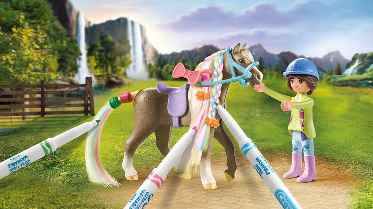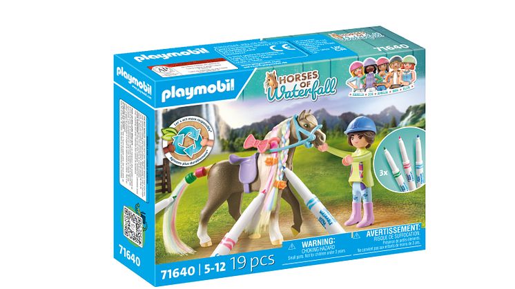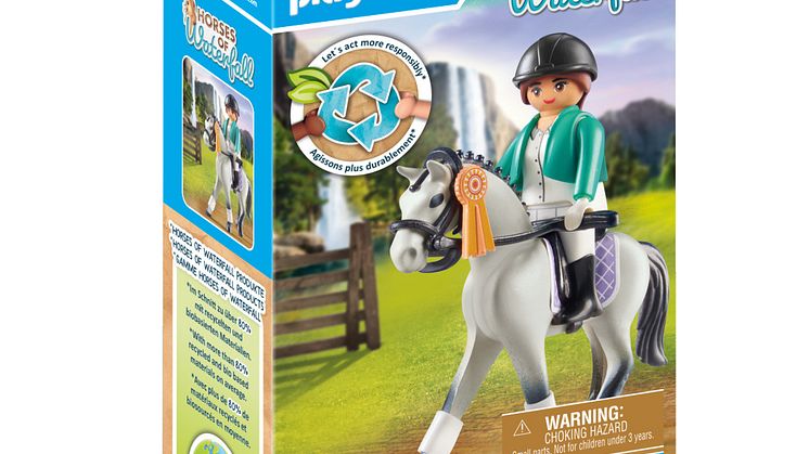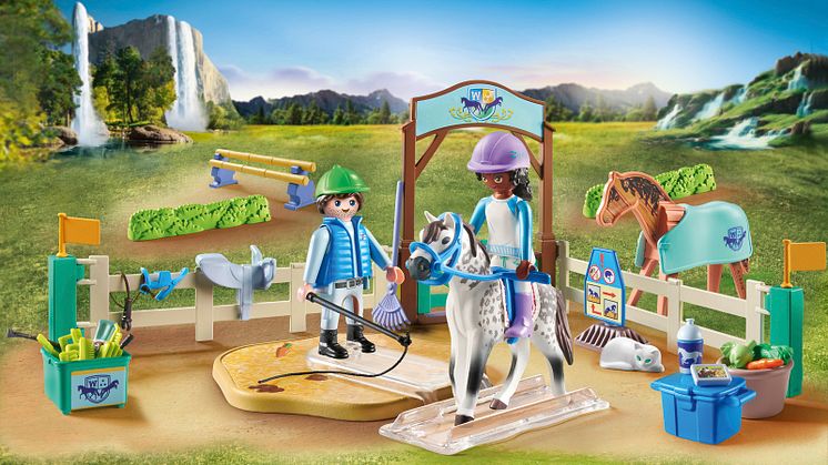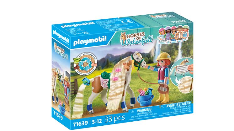 Zentrum der vielseitigen Pferdewelt Horses of Waterfall von PLAYMOBIL ist die malerische Waterfall Ranch. Ab sofort sorgen fünf neue Sets mit teils besonderen Features wie kämm- und färbbare Mähnen und Schweifen und mit einem Kreppeisen, sowie der Longierplatte für das Reittraining, für viel Spielfreude sorgen. Alle Spielsets bestehen im Schnitt zu über 80% aus recycelten und biobasierten Materialien.