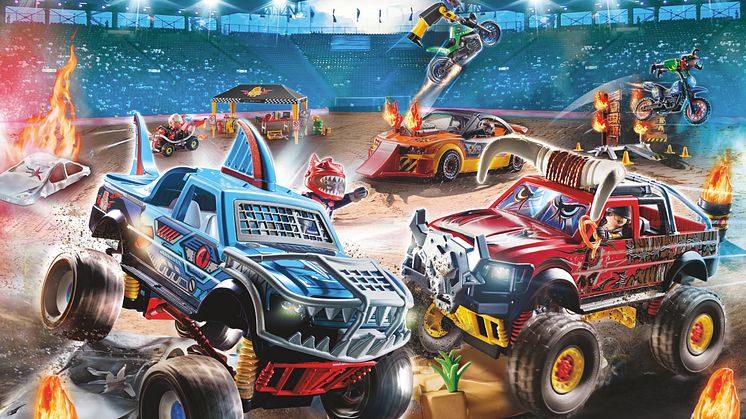 Jede Menge PS und quietschende Reifen: Bei der PLAYMOBIL-Stuntshow dreht sich ab sofort alles um Adrenalin pur! Die neue Spielwelt begeistert mit monsterstarken Fahrzeugen und macht Motorsport in seiner extremsten Form erlebbar.