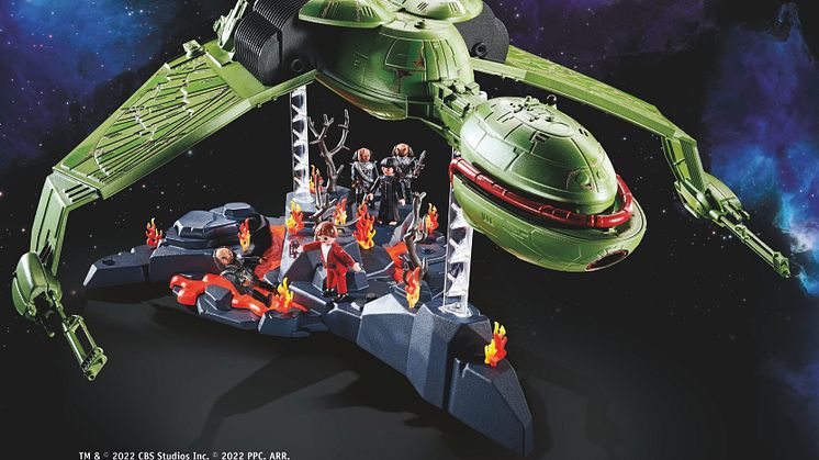 Ab Oktober erweitert dieser klingonische Bird-of-Prey das PLAYMOBIL Star Trek-Universum und nimmt alle Fans mit auf eine Reise durch die Zeit. Es ist die authentische Nachbildung der von Dr. McCoy getauften HMS Bounty. Mit an Bord: der berüchtigte Klingone, Commander Kruge und dessen Crew, Offizier Maltz, Torg und weitere Klingonen. Das schwer bewaffnete Kampfschiff der klingonischen Verteidigungsstreitmacht und seine Besatzung unter Kruge kaperten die U.S.S. Enterprise und wurden kurz daraufhin mit ihr zerstört. Nachdem Admiral Kirk Kruge besiegt hat, übernehmen er und seine Crew den Bird-of-Prey.