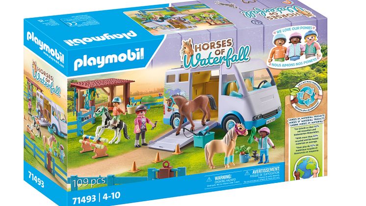 Zentrum der vielseitigen Pferdewelt „Horses of Waterfall“ ist die malerische Waterfall Ranch. Dort stehen jetzt die neuen süßen Ponys im Mittelpunkt der Neuerscheinungen. Alle Spielsets bestehen im Schnitt zu über 80% aus recycelten und biobasierten Materialien. Zudem startet eine neue Hörspielreihe für alle Fans der Reiterhofwelt.