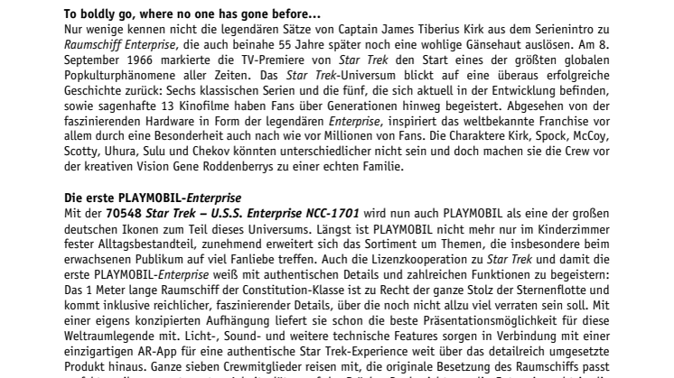 PLAYMOBIL x STAR TREK: U.S.S. Enterprise NCC-1701 und Crew erscheinen erstmalig von PLAYMOBIL