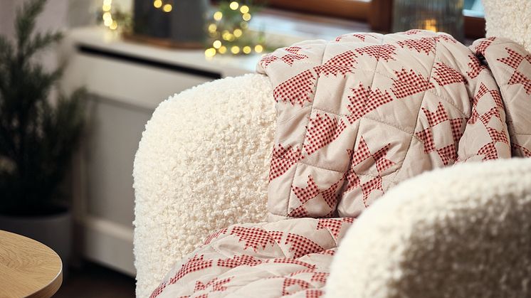 Der Inbegriff von Adventshygge: unsere Steppdecke TRILOBIT. Die Decke lädt zu kurzen, kuscheligen Pausen auf dem Sofa ein. Das hübsche Muster in beige-rot versetzt uns bereits jetzt schon in Festtagsstimmung. TRILOBIT ist 140x200 cm groß und besteht aus Polyester. (Steppdecke TRILOBIT 15,00 €)