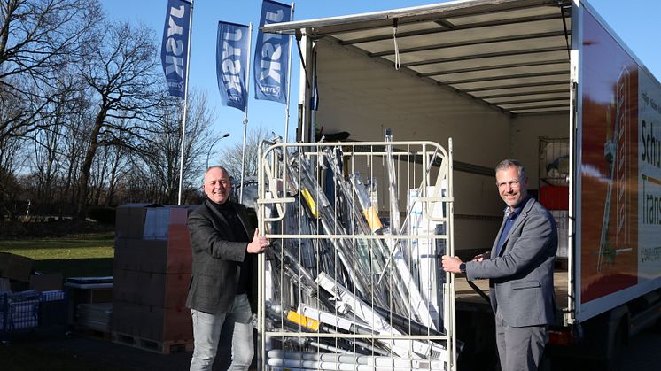 Thomas Rasmussen, Bürgermeister der Gemeinde Handewitt: „Die Sachspenden kommen genau zur richtigen Zeit, weil wir gerade größeren Wohnraum für ukrainische Geflüchtete in der Gemeinde herrichten. Wir sind JYSK sehr dankbar.“