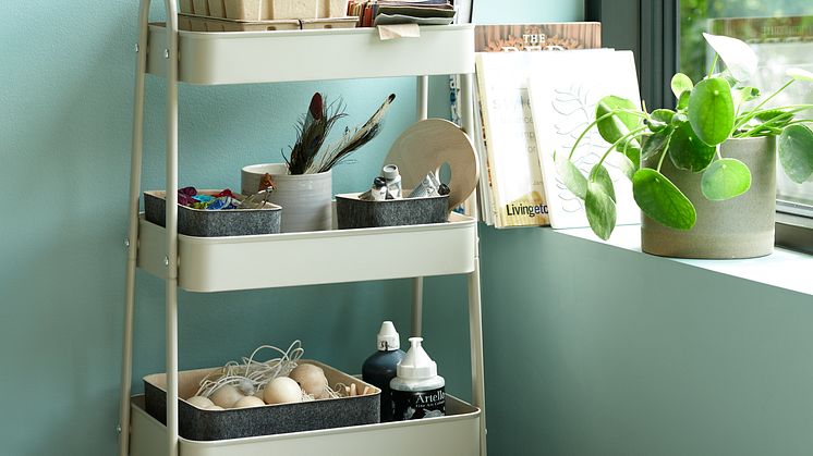 Ob als Servierwagen für Getränke im Wohnzimmer, als extra Stauraum für die Küche oder aber als Ablageort für das Homeoffice – der Beistellwagen KANSTRUP ist vielseitig einsetzbar und macht dabei immer eine gute Figur. Durch seinen neutralen Look in Beige passt er sich jeder Raumgestaltung an und die vier Rollen ermöglichen eine simple Umplatzierung. KANSTRUP besteht aus Stahl und Polypropylen und misst B47 x H79 x T31 cm. (Beistellwagen KANSTRUP 40,00 Euro)