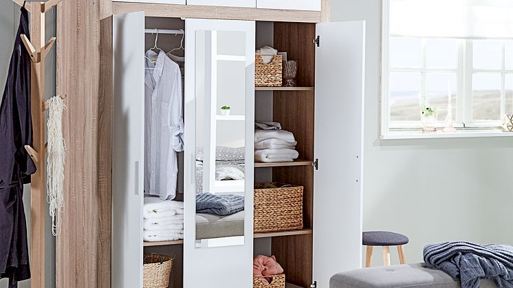 Damit deine Kleidung am Abend einen designierten Platz hat und nicht wahllos auf dem Boden zerstreut liegt, bietet der Kleiderständer MOLTRUP ausreichend Platz für deine Kleidungsstücke, die zwar zu sauber für die Wäsche sind, aber auch nicht mehr zurück in den Schrank sollen. Außerdem kannst du dir hier bereits dein Outfit für den nächsten Tag zurechtlegen und sparst dir somit ein bisschen Zeit am Morgen. MOLTRUP besteht aus schwarzem Polypropylen und Stahl und hat eine Maße von B60 x H155 x T53 cm. (Kleiderständer MOLTRUP 25,00 Euro)