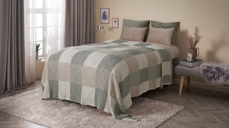 Für etwas mehr Farbvielfalt sorgt die Tagesdecke HENGEAKS in Grün/Beige. Die karierte Decke misst 220 x 240 cm und besteht aus 100 % Baumwolle. Die unterschiedlichen Naturfarbtöne sorgen für Ausgeglichenheit in deinem Schlafzimmer und laden zum Entspannen ein. (Tagesdecke HENGEAKS 59,99 Euro)