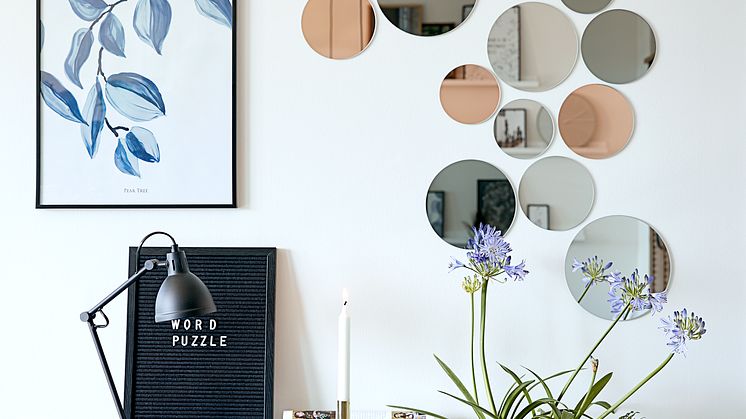 Für wen ein gewöhnlicher Spiegel zu wuchtig erscheint, der findet sicherlich Gefallen am Spiegel KALVEHUSE, bestehend aus zehn einzelnen, verschieden großen, runden Spiegeln. Diese besondere Art der Wanddekoration ist nicht nur ein schönes, sondern auch praktisches Detail für dein Schlafzimmer. Die Spiegel bestehen aus EVA und Flachglas und messen im Durchmesser 12/15/18/21 cm. (Spiegel KALVEHUSE 10,00 Euro)